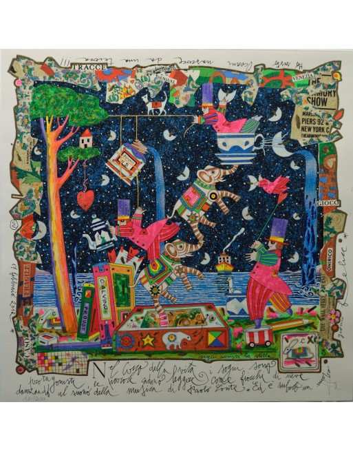 Serigrafia polimaterica su carta con interventi in glitter