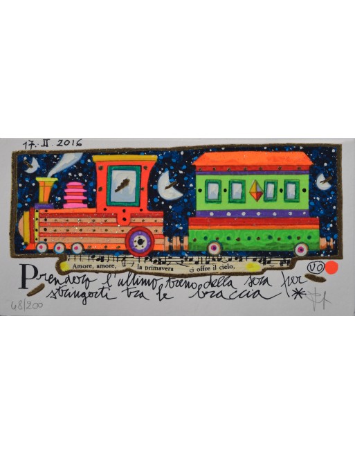 Serigrafia polimaterica su carta con interventi in glitter