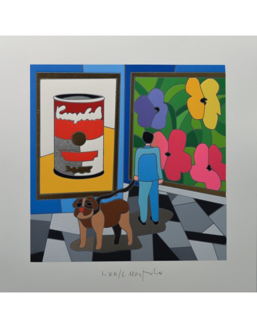 Serigrafia a 37 colori con interventi in glitter, foglia oro, argento e bronzo, floccaggi e passaggio calcografico a secco