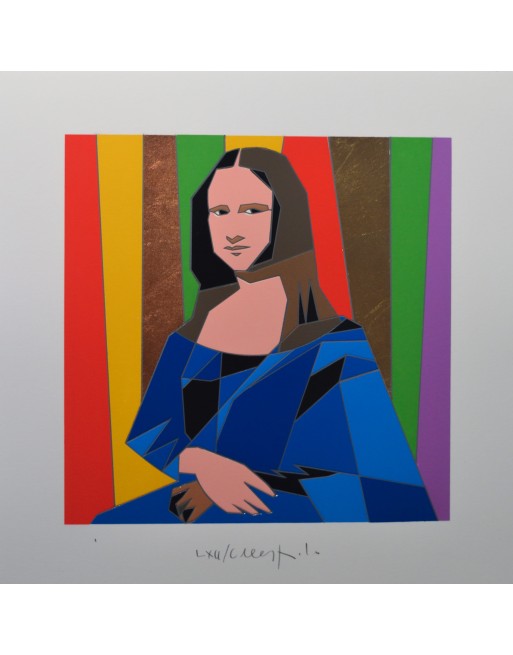 Serigrafia a 37 colori con interventi in glitter, foglia oro, argento e bronzo, floccaggi e passaggio calcografico a secco