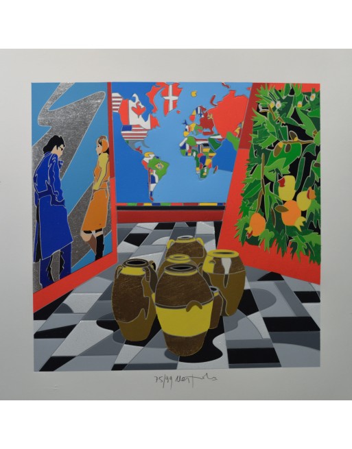 Serigrafia polimterica con floch, calcografia, collage e foglia oro